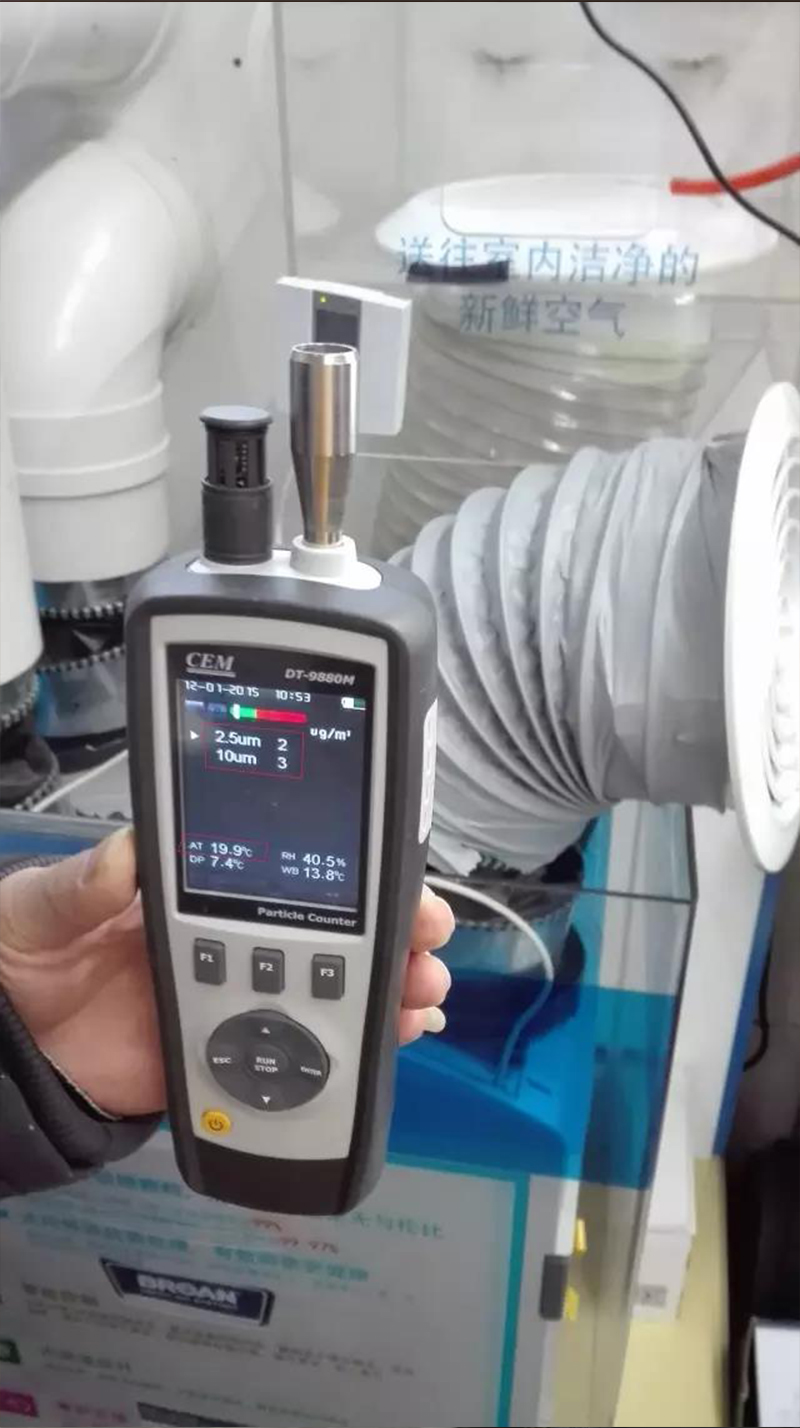 3、风口附近测试,温度19.9℃ (PM2.5 :2μg/m3)