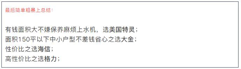 综上所述,家用空调什么牌子好?相信认真阅读了上文的读者心中已经有数了。小编虽然没有明确的告诉读者哪个品牌最好,因为这些品牌都不错,当然,我们也可以按照需求来分————————