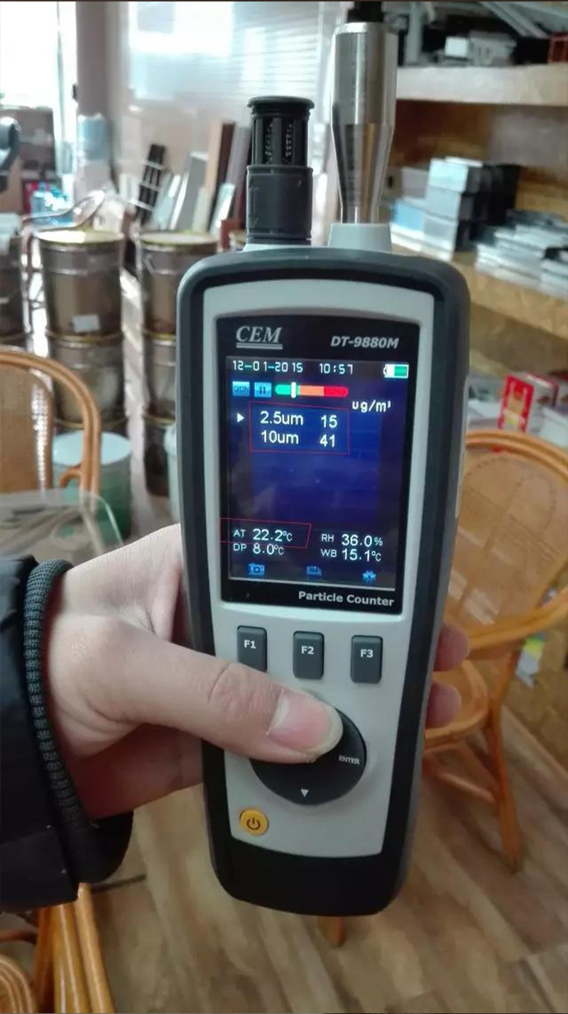 2、室内任意区域测试,温度22.2℃ (PM2.5 :15 μg/m3)